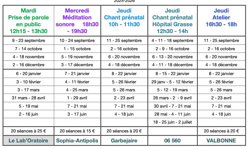 Chant prénatal jeudi de 12h30 à 14h à l'Hôpital de Grasse :
