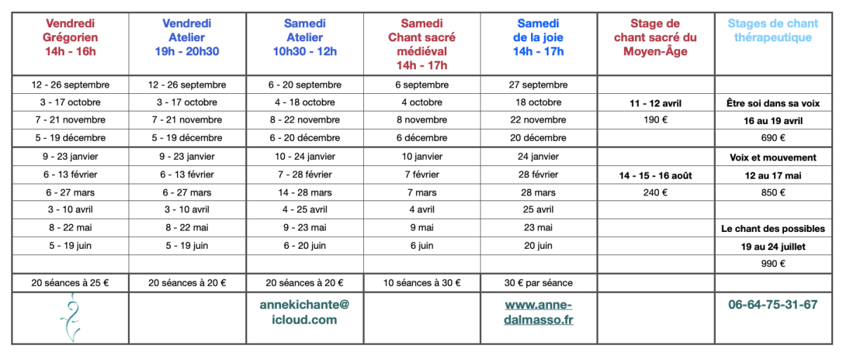 Chant prénatal jeudi de 10h à 11h30 8 - 22 janvier 26